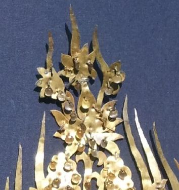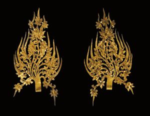 공주시 무령왕릉에서 출토된 백제의 금으로 만든 왕관(王冠) 꾸미개(장식) 한쌍이다.