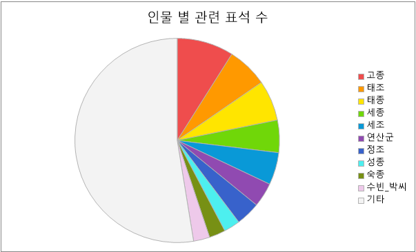 한양 즉 서울을 도성으로 하였던 조선이었기에, 표석의 역사적 사건 그리고 인물과 관련하여 해당 시대의 왕은 누구였는지 분석하고자 하였다. 고종이 7개, 태조 5개, 태종 5개, 세종 4개, 세조 4개, 연산군 3개, 정조 3개, 성종 2개, 숙종 2개, 정종 1개, 인조 1개, 순조 1개, 철종 1개, 영조 1개의 표석과 관련이 있었다.