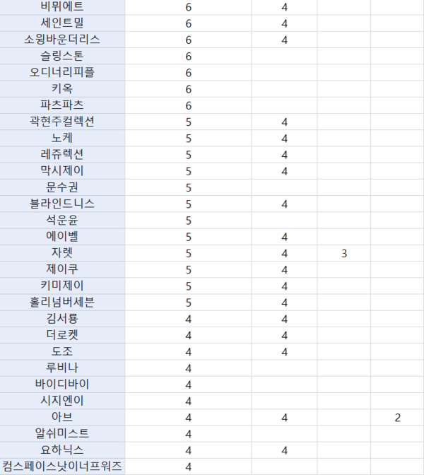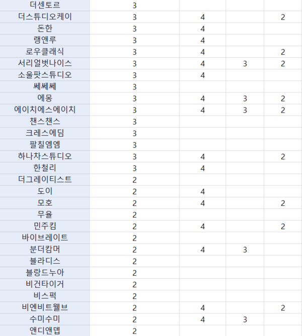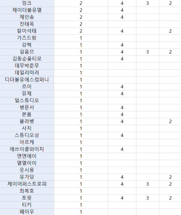 2-2. 관계성 단계별 패션위크 참여 횟수 데이터 정리 표