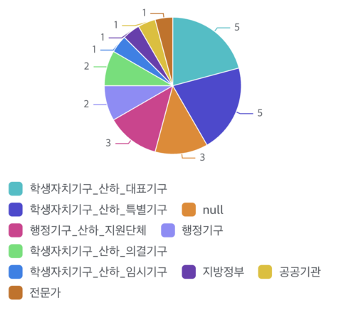 행위자 차트에서 학생자치기구 산하에 해당하는 단체는 24건 중 13건, 즉 약 50%의 비중을 차지한다.