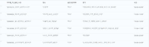 | Location | 위치 | 사건이 발생한 장소의 행정구 및 행정동 |