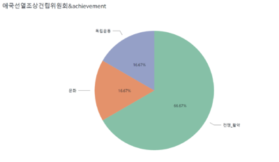 - achievement역시 앞서 조사한 다수의 참고자료들을 기반으로 하여, 크게 '전쟁_활약, 독립운동, 사회운동, 문화'의 중 하나로 분류하였다.