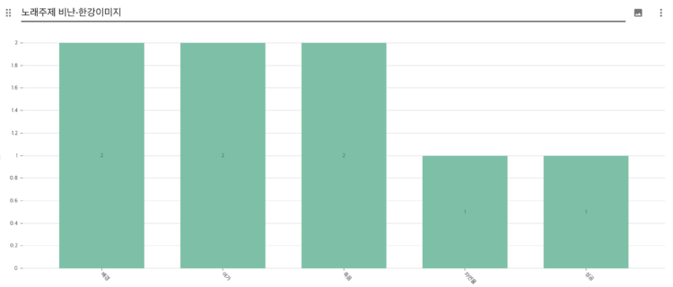 3.노래의 주제와 한강의 이미지 노드를 만들 때 항목화하는 작업부터 이에 맞춰서 가사들을 분류하는 작업까지 주관성이 개입될 수밖에 없었다. 특히 두가지 이상의 주제가 나타나는 경우 둘 중 메인 주제를 선택하는 과정에서 주관성이 개입되었다.